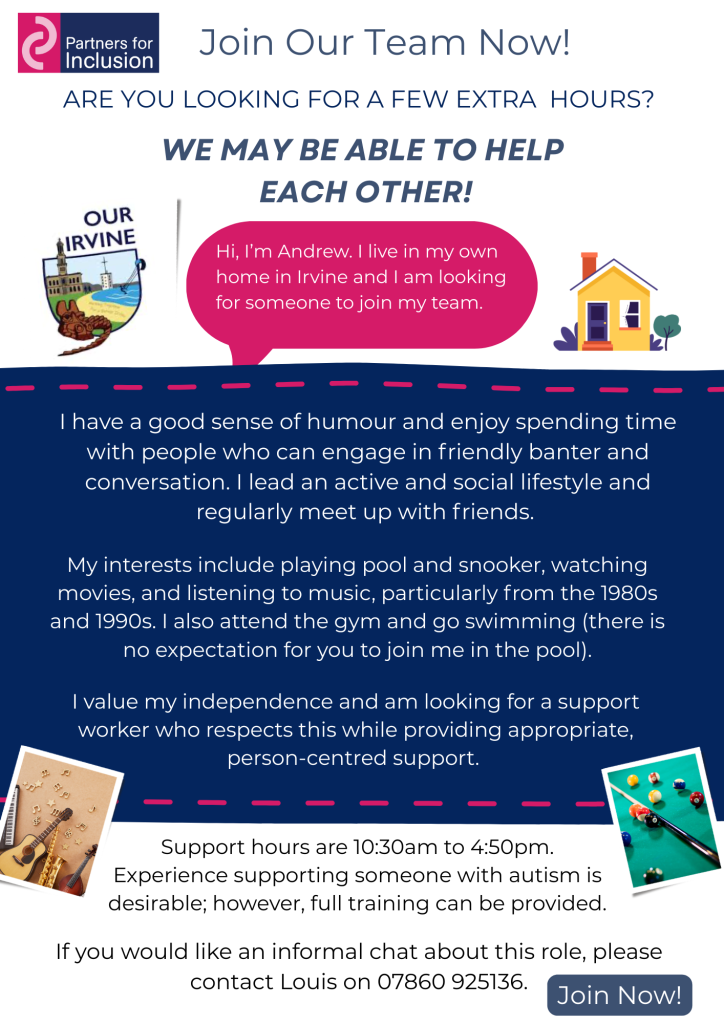 If you would an informal chat regarding this vacancy please contact Louis on 07860 925136 or email louis.heath@partnersforinclusion.org